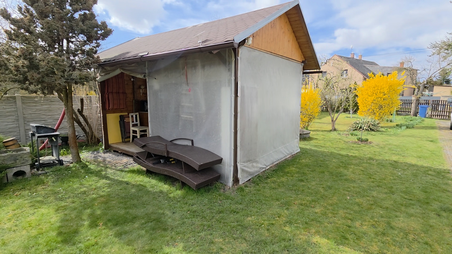 Součástí pronájmu je prostorná zahrada o výměře 1 100 m² se zastřešenou pergolou, která nabízí dostatek soukromí i prostoru pro relaxaci. Na pozemku je možné parkování až pro 3 vozy, další parkování je možné před domem.